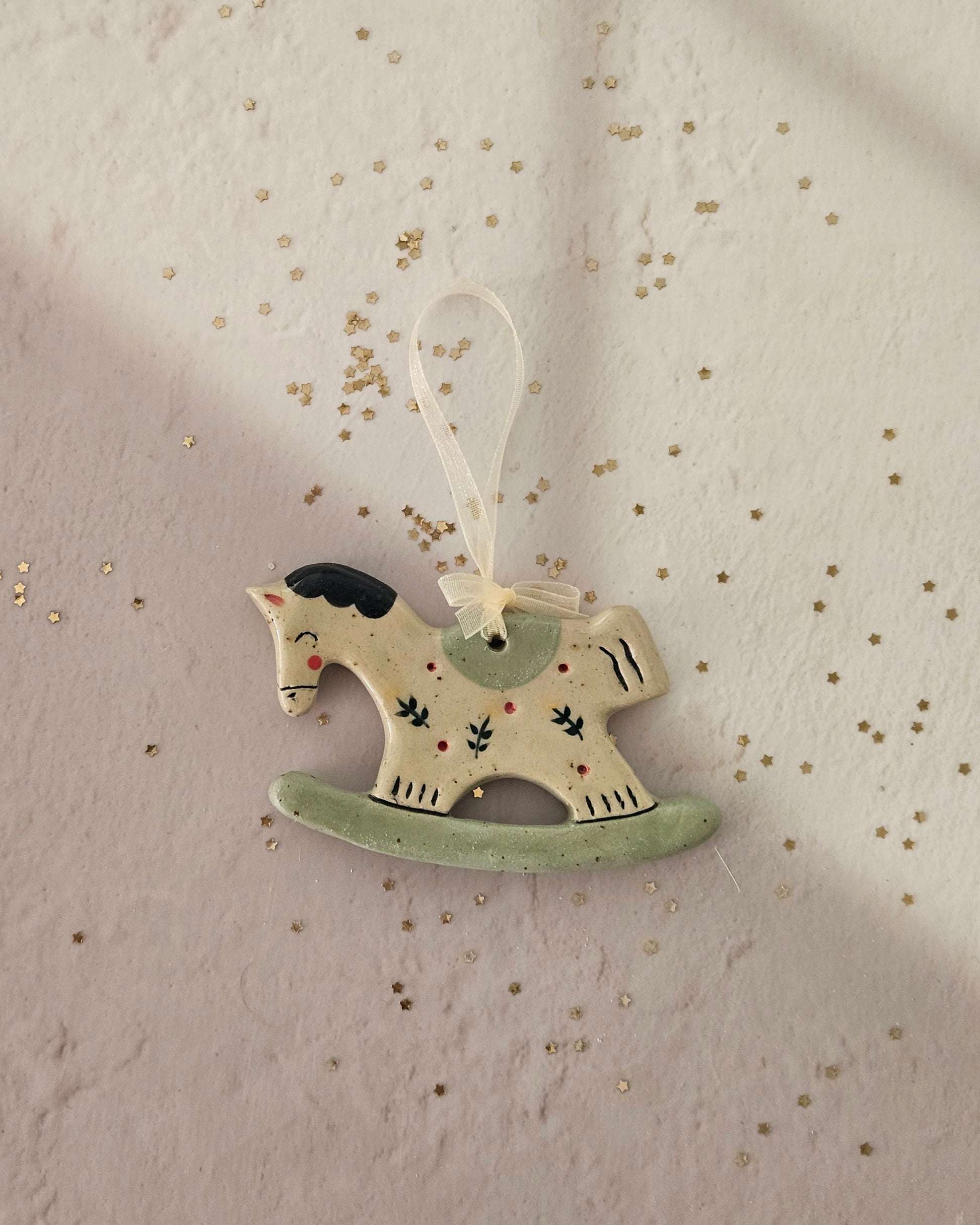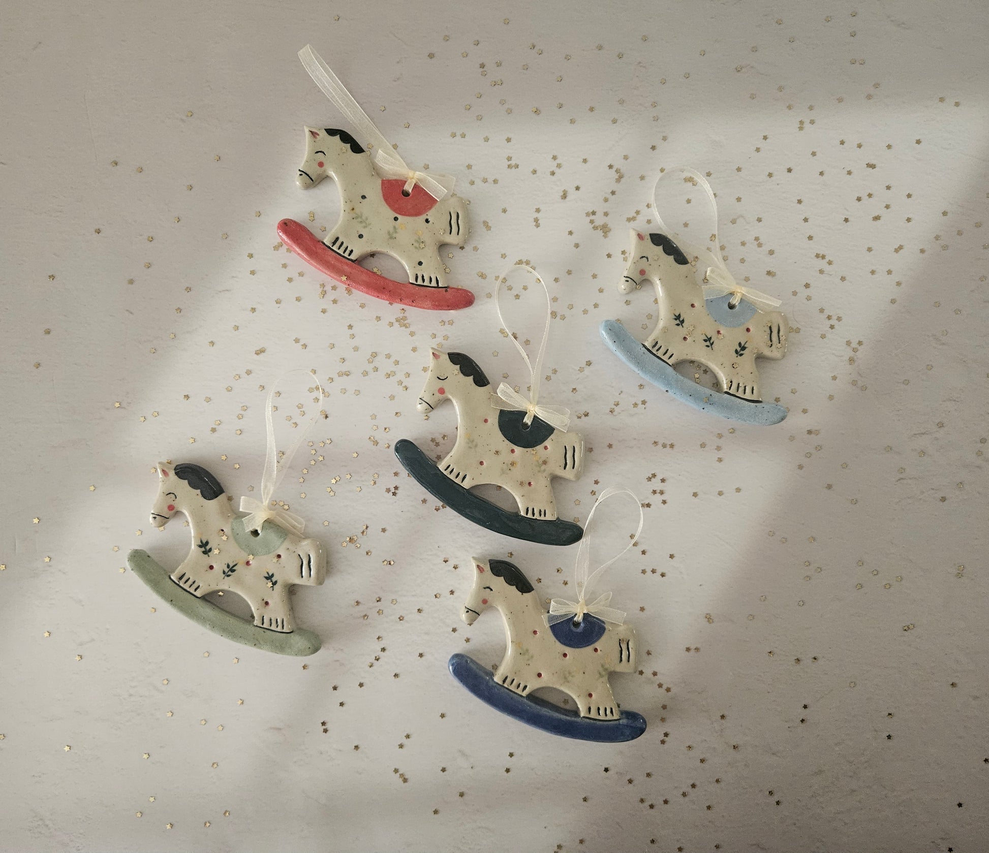The Althira Horses ornaments bring a sense of movement, freedom, and childhood joy. Each color expresses a different mood—some warm, some lively, others calm. Together, they create a small palette of magic that adds character and gentle nostalgia to any space. Perfect for those who want their décor to tell stories and fill the room with softness at a single glance.