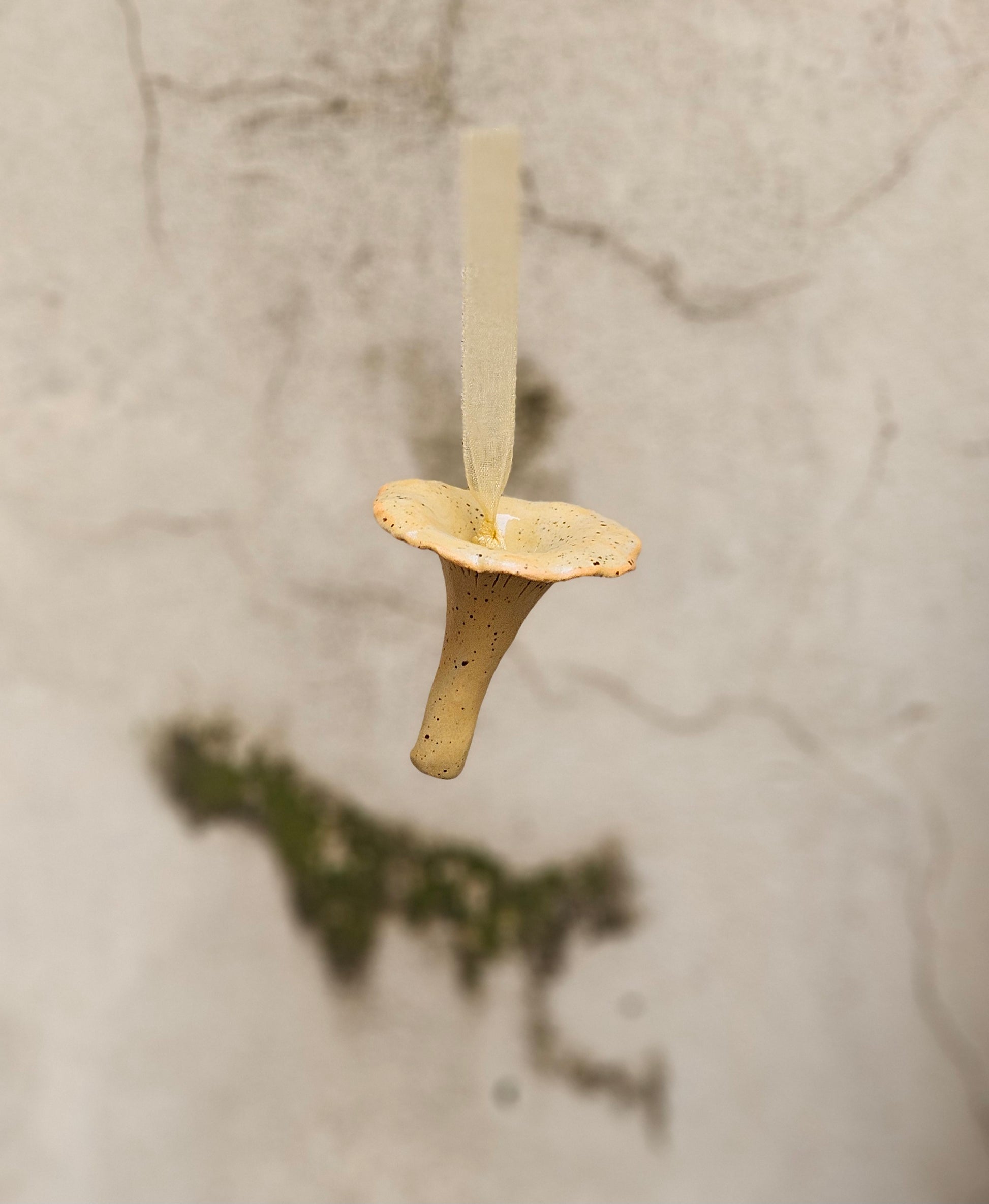 Cantharellus ferruginascens, commonly known as the “chanterelle,” is distinguished by its golden-yellow color and elegant, wavy shape. It evokes a sense of forest freshness and natural refinement. As a decorative ornament, it brings brightness, harmony, and a soft, organic aesthetic to any arrangement.